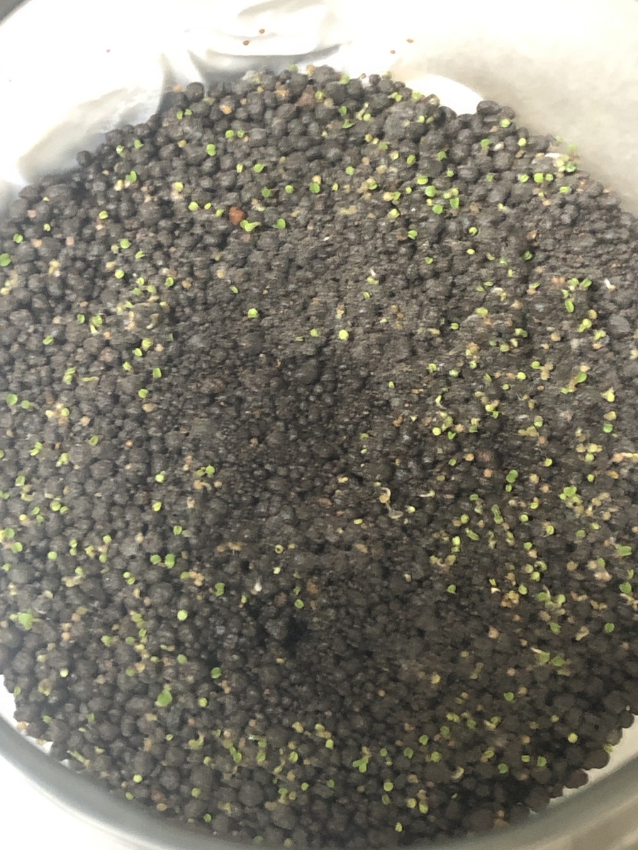 くるくるした草を間引いて、ピンセットを使って土に根を埋めました。
