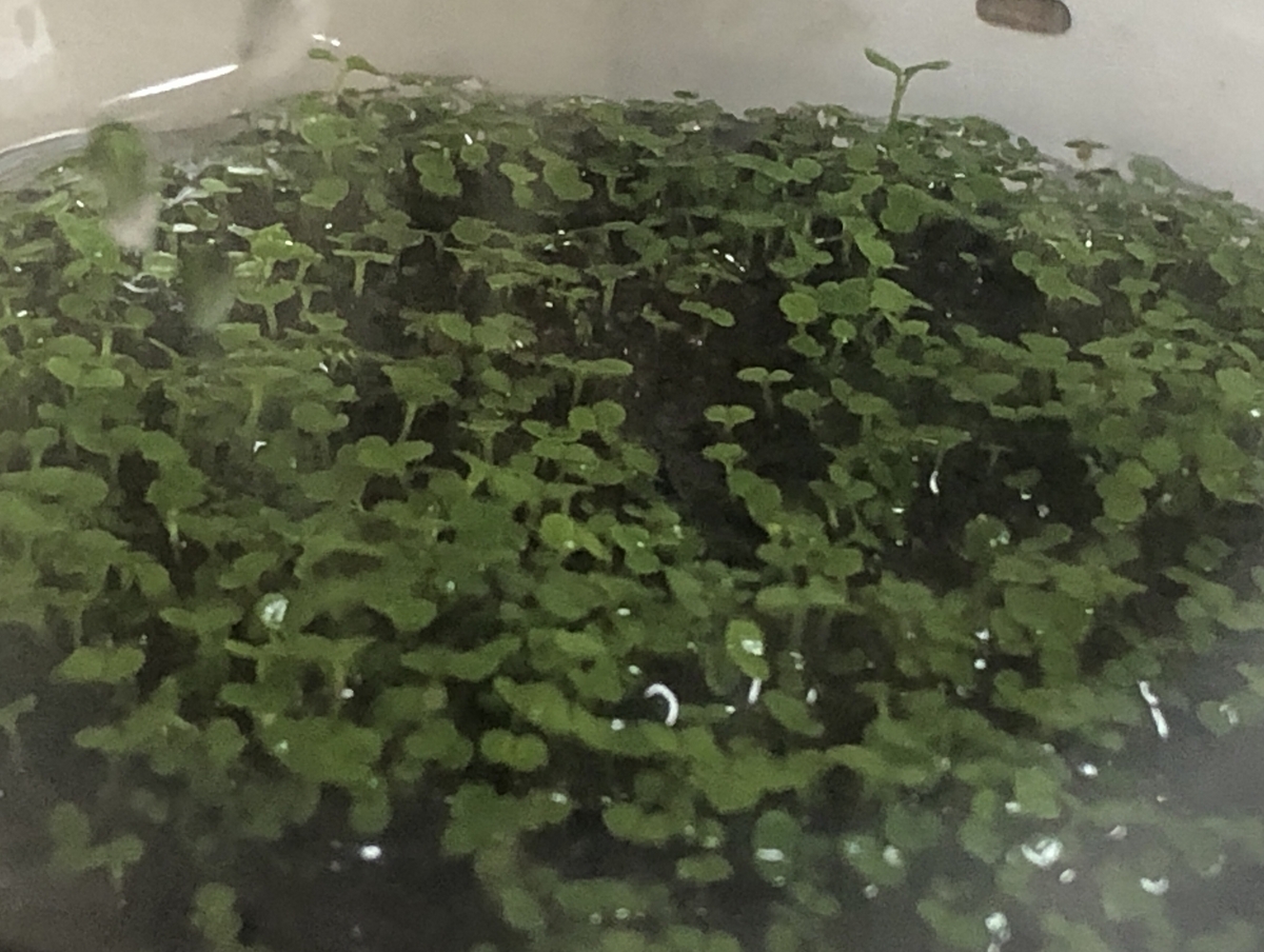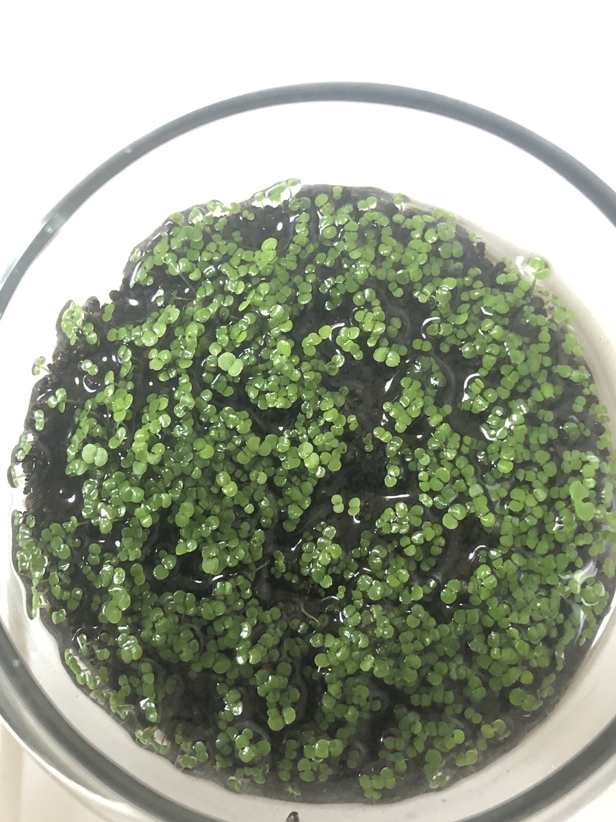 水草なので本来は水の中で生きる草なので、水を満杯に入れないといけないのですが、いつ水をひたひたに入れればいいのか分からず、迷走しながら徐々に徐々に水が増えていってます。