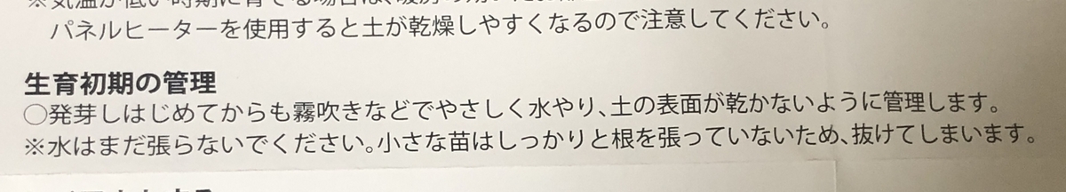 根が安定していないので、霧吹きで水をやれと書いてありました。
